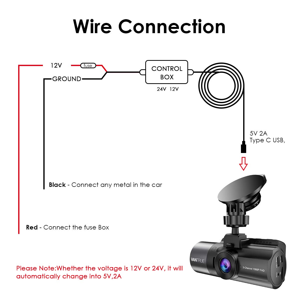 | Compatible 12 – 24V VehiclesThis hardwire kit accepts voltage from any type of vehicles runs on 12 – 24V, works perfect for car, truck, bus, suvs, or big rig for continuous power. | Low Voltage ProtectionSmart low voltage protection automatically shut off the power to your dash cam when the battery voltage drops to 11.6V(12V cars) or 22.8V(24V cars), thus preventing it draining the battery. |